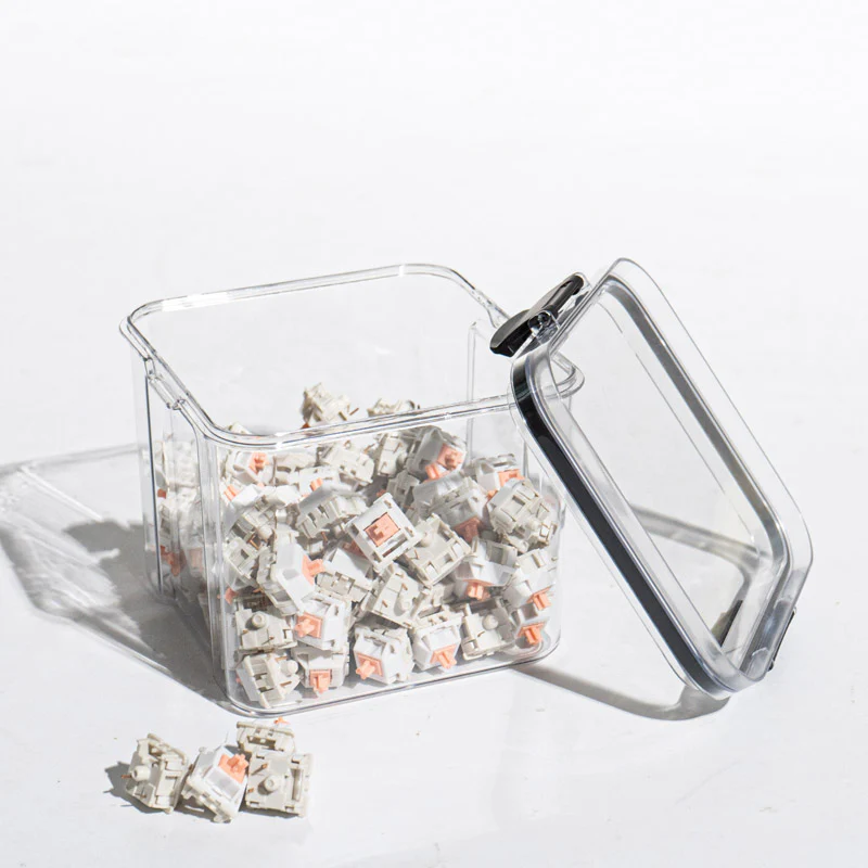 Keep your mechanical keyboard switches organized and protected with these convenient switch containers! Available in transparent white, playful pink, and refreshing green, these stackable boxes are perfect for storing loose switches.